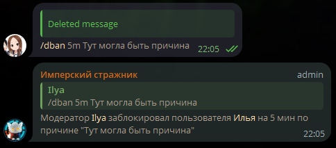 /dban <ответ> (<длительность>) (<причина>)