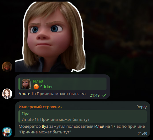 Необязательный параметр | Причина мута. | Нарушение правил |