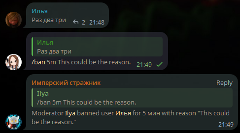 Optional | Reason for the ban. | Violation of rules |