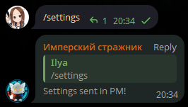 Sends the chat settings to your private messages. Learn more about