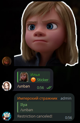 Cancels all active bans from a user. If the user is banned directly through Telegram, the ban will also be removed.