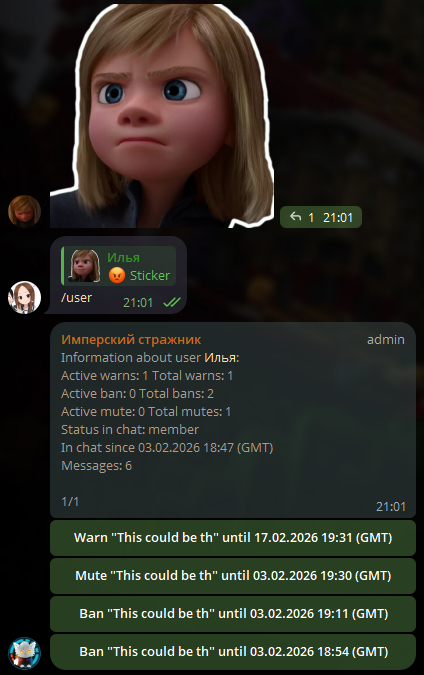 Required | User ID, mention, or reply to a user's message. | @monk 7308887716 |